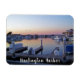 Söt foto av sol som sätter över Huntington Beach Harbour, Huntington Beach CA - dockor, båtar och bostäder i sikte.