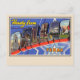 Detta vintage vykort reproduserar stora bokstäver fyllda med ikoniska bilder av Dallas Texas