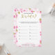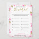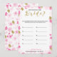 En delikat modern blomsterbröllopslek "Hur gammal var bruden" , designen har ett rosa och guldblommigt mönster, detta kort är personifierat med den blivande brudens namn och datum för bröllopsfesten.