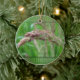 Ett makroskott av en blomma med gräs sprinklad med droppar från vatten, fröna som vrider lilan mot en bakgrund av rikens grönt. Bilden är en glasmosaik av fält runt den.