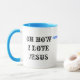 Mugg har ett vackert kor i mitten och var och en säger: "Hur jag kärlek Jesus?"