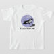 En söt liten dvärghamster i en blå träning boll med ord, "Det här är så jag rullar" springa över den här konstiga hamsterskjortan.