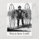 Denna antika cykel från 1860-talet har en ovanlig konfiguration av sidohjulet. Det användor också både arm och benkraft. Den tillagda texten är "Så här rullar jag!"