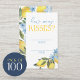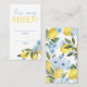 Eleganta, söta och enkla Hur Många Kyssar för den Snart att Bli Fru Spel Gissa Kort. Förpackning om 100. Del av vår akvarell citron och blomster huvud squeeze bröllopsfest fest kollektion. Med vackra eleganta dammiga skiffer blå akvarell blommor och söta gula citroner.