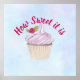 En poster som säger: Hur söt det är. Designad med en illustration av en utsökt kaka med rosa snurrar och ett bär med löv inkapslat i frosten. Ange en ljusblå bakgrund för pastellfärgerna.