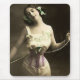 Vintage fotograferar av en ung kvinna i mamelucker och en korsett. Hon är hållande snörena av korsetten som, om hon är klar till handtag det som är mer åtsittande, även om det är incredibly åtsittande redan
