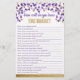 Hur väl känner du Bruden? Spel för Bröllopsfest i lila och guld. Lite trivia om den blivande bruden är alltid roligt att spela och utmana dina gäster.