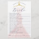 Roligt och snyggt hur väl känner du till bridduschkortet? Roligt att spela på möhippan party. Elegant rosa shimming-klänning med vintage i guld som visas i bakgrunden. Originalteckningar och design efter modelldokument.