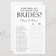 Så här känner du till Briderna? HGBTQ Möhippa Game lakan kommer att ge möhippan mycket roligt och skratt! Sidan är både elegant och modern. Dess enkla utformning med svart typsnitt på vitt är perfekt för vilket bröllop som helst. Om du vill göra det här spelet till ditt eget väljer du Anpassa den här mallen och skriver i namn och initialer på briderna.