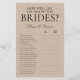 Så här känner du till Briderna? HGBTQ Möhippa Game lakan kommer att ge möhippan mycket roligt och skratt! Sidan är både elegant och modern. Dess enkla utformning med svart typsnitt på papper båt är perfekt för alla bröllop. Om du vill göra det här spelet till ditt eget väljer du Anpassa den här mallen och skriver i namn och initialer på briderna.