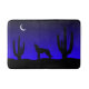 Omfamna vildmarkens anda med denna stämningsfulla sydvästliga design. Med en ensam varg silhuetterad mot en djupblå stjärnhimmel fångar denna scen en fridfull ökennatt inramad av saguarokaktusar och en lysande halvmåne. Dess djärva, grafiska stil och lugna färgpalett gör den till ett mångsidigt val för heminredning, kläder eller brevpapper för naturälskare och fans av den amerikanska västern.