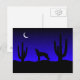 Omfamna vildmarkens anda med denna stämningsfulla sydvästliga design. Med en ensam varg silhuetterad mot en djupblå stjärnhimmel fångar denna scen en fridfull öken natt, inramad av saguarokaktusar och en lysande halvmåne. Dess djärva, grafiska stil och lugna färgpalett gör den till ett mångsidigt val för heminredning, kläder eller brevpapper för naturälskare och fans av den amerikanska västern.