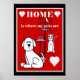 En bild av husdjur på en poster. På poster står det: "Hem är där mina sällskapsdjur finns".