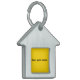 Husdjurets namn med gul bakgrund på husformad ID-bricka husdjur