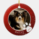 Få din hund eller katt att lysa med en eller två foton på detta dubbelsidiga ornament med röda bakgrund och snöflingor och stjärnor och ett fotavtryck för året. FOTOTIPS: För bästa och snabbaste resultat, välj ett foto med motivet i mitten och/eller beskär ditt foto till en fyrkantig form INNAN du laddar upp. Kontakta designern via Zazzle Chat eller makeitaboutyoustore@gmail.com om du vill att denna design ska ändras eller om du vill ha hjälp med att överföra den till en annan ornament eller annan produkt.