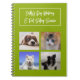 Anteckningsbok för hund- eller katt-sittare. Hjälper djurälskaren att hålla koll på sin verksamhet. Ljusgrön spiralbunden anteckningsbok med fyra bilder på katter och hundar på framsidan. Använd exempelbilderna om du vill, eller ersätt dem med dina egna favoritbilder. Anpassa med en titel i modern handstil längst upp. Använd för att organisera ett litet företag.