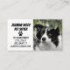 Ett livfullt och vackert visitkort för husdjurs-sitter eller hund-uthyrare etc. Med en vacker bild av en border collie för att sticka ut och bli ihågkommen av alla hundälskare som får detta kort. Få din verksamhet att se riktigt professionell ut och få förtroende med en snygg kortdesign. © Collie-bild exklusiv för Zazzle.