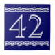 Huset numrerar - hjärta virvlar runt vit på blått kakelplatta
