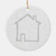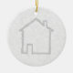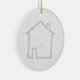 En husillustration i grått. Denna hussymbol skissades med en diagramtablet. Detta gråa hussymbol är på ett ljust - grå bakgrund med ett slumpmässigt mönster.
