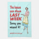 Ha lite roligt med det här amerikanska köket som visar en hemmafru som håller en tallrik på 1950-talet med texten "Huset var rent förra veckan, förlåt att du missade det" till den lämnat. En roligt vintage ser om ditt hus inte alltid är det mest tidsinställda. Lägg till ett personlig nedan eller ta bara bort platshållartexten om du vill lämna området tomt. Tillgängligt med matchande produkter.