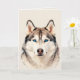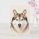 A stunning card featuring a blue eyed Husky dog art design. Blank inside for your own message. Suitable for any occasion.