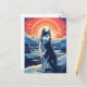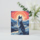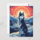 Färgfull konst med ett Husky i vinterskogen under solnedgången.