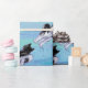 Siberian huskyhundhuvud och svanar mönstrar t-skjortor, elektronik, gåvor, och tillbehören presenterar vår original- konst av våra begåvade barns illustratör av en svartvit Husky framifrån och från baksidaen i ett roligt seamless mönster på en texturerad blåttbakgrund.