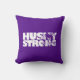 Den här accenten dekorativ kudde visas med ett Husky Strong-tryck. Färg är lila och vitt. Anpassa det här objektet eller köp som det är. Licensierad utskrift