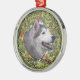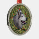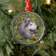 Cute Siberian husky porträtt gick mot en mörk grönt julkrans som sprinklades med röda yew berry-högdagrar.