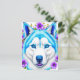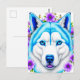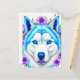 Huskyhund med blå ögon och blommor vykort