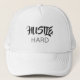 En anpassningsbar truckerkeps med frasen "Hustle Hard".