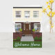 En bungalowhusdesign med möjlighet att anpassa meddelandet på framsidan och insidan. Dessutom kan husets adress läggas till framsidan om så önskas för en extra speciell touch. Originaldesign av Night Owl's Menagerie, 2020.