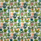 Här i kammaren finns växter med flera handmålade hus i krukor. Du kan lägga till en bakgrund färg bakom husanläggningarna för att matcha ditt projekt. Du kan också göra mönster större eller mindre på tyget.