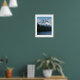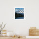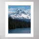 Färgfull poster utskrift med en fotografisk bild av snö-socklade monteringsfartyg, Oregon, och en scenisk, skog, sjö med en ensam fiskebåt. Anpassa poster storlekt efter behov.