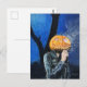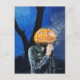 Ett spöklikt Halloween-kort med pastellkonstverket ”Den huvudlösa motorcyklisten”. Illustrationen visar en spökande pumpa med läderjacka som röker en cigarett en kall och mörk oktober-natt. Originalkonst: Pastell på papper. Copyright Dominic A. White. Med ensamrätt.