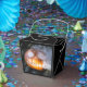 Huvudlösa ryttarens Jack-o-lantern-huvud i lågor Presentaskar