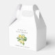 Tillsätt en söt touch till din bröllopsfest med denna eleganta citron-tema gåva låda av Redwood & Vine Design Co. Med akvarell citrus konstverk och personlig text, är denna charmiga låda perfekt för att presentera små godsaker, godis eller presenter på bröllopsfester, trädgårdsfester och sommarfiranden.