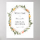 Välkommen gäster till din bröllopsdusch med denna vackra affisch, med en guldram omgiven av clementiner, apelsiner och grönska. Lägg till hedersgästens namn, duschdatum och anpassad välkomsttext med hjälp av de tillgängliga fälten.