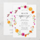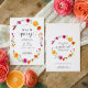 Fira att hon har hittat sin stora kärlek med denna ljusa och glada bröllopsfestinbjudan. Med en akvarellkrans av färska citrusapelsiner och livfulla rosa och orange blommor, fångar denna design den glada energin av en sommarglädje. De mjuka penseldragna detaljerna och den ljusa färgpaletten skapar en fräsch, romantisk look som känns lekfull men ändå förfinad.