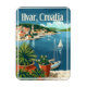 En fängslande och nostalgisk skildring av Hvar, Kroatien, känd för sitt fantastiska Adriatiska kusten, levande nattliv och historisk charm. Konstruktionen fångar öns kristallklara turkos vatten, picturesque hamn och byggnad i forntida sten som ligger längs kusten. I en vintage stil framkallar konstverket Hvar:s goda skönhet och livliga stämning och uppmanar tittarna att utforska sina fantastiska landskap och rikens kulturarv.