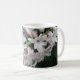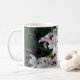 Det här söt mugg har ett vackert närliggande foto av en grupp vackra vita Hyacint-blommor. Varje blomma är vit på insidan och stickad med en söt blek rosa färg på utsidan. Utformningen visas här på ett vitt baskaffe mugg, men finns också på en rad olika färg och stilar i muggar, inklusive ett vackert frostat glas mugg.