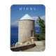 En vacker syn på en kvarn på ön Hydra i Grekland tryckt på en kylmagnet i souvenir.