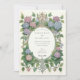 Den här krävande bröllopsinbjudan innehåller en delikat utformning av Art nouveau, som är försedd med mjuk rosa, blått och lavender-vattenområden, omgiven av lush grönt lövs. Den invecklade blommigten gräns skapar ett spännande ram kring detaljerna kring bröllop och lägger till en romantisk charm och en charm för vintage till ert uttalande i bröllop. På inbjudets framsida framhävs ceremonin med det vackra motivet för blommigten, medan baksidan visar en ornerad arrangemang av vattendrag, skapar denna perfekt för inbjudan till par att söka efter en trädgårdsininspirerad, klassisk eller Art nouveau-tematiserad bröllop.