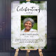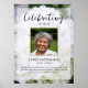 Den perfekta minnesaffischen för att hälsa familj och vänner när de kommer till firandet av ditt älskade livs. Speciellt för någon som älskar blommor och kanske trädgårdsskötsel - designen har ett fyrkantigt personligt foto, 5 rader anpassad text och ett bakgrundsfoto av vackra vita hortensior. Du kan enkelt byta ut detta med ditt eget bakgrundsfoto. Klassisk men unik - den här mallen är så enkel att anpassa och kommer också att bli en underbar minnessak.