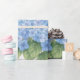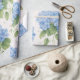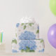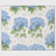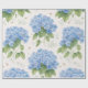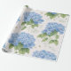 Elegant hydrangea blommigt inpackningspapper med mjuka blå blommor på en varm elfenbensvit bakgrund. Ett tidlöst val för födelsedagar, bröllop, trädgårdsfester och förfinad present.