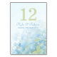 Hydrangea blommigt blue grönt bröllop bordsnummer
