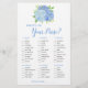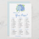 Det här möhippa-spelkortet är What's in you purse? Utformningen har vattenfärgsblå vattenblommor. Anpassa kortens baksida med bridens namn. Matchande möhippa party-förråd finns också.