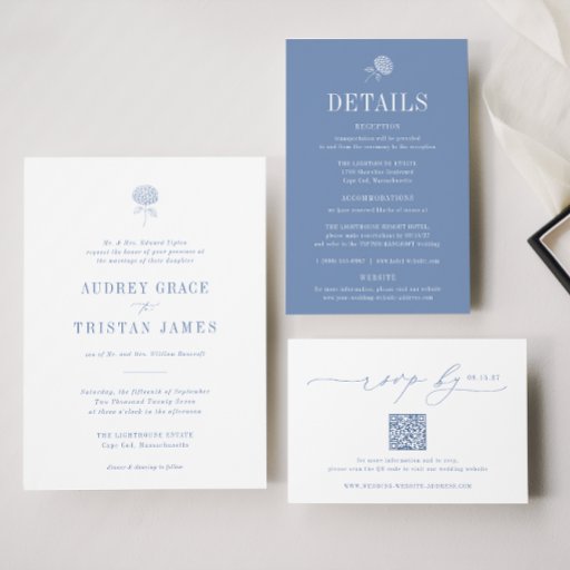 HYDRANGEA Blue Floral Wedding Inbjudningar