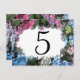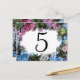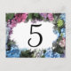Anpassa de här söt Hydrangea Flower Ram-Bordsnumren och skapa ett annat kort för varje bord på ditt trädgårdstema giftermål mottagning, möhippa eller förlovningsfest. Dessa bordsnummer för anpassningsbar av blomsterprodukter har ett digitalt målat foto av blommigten blå, rosa och vita blommar för vattenblommor med löv av grönt.