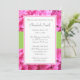 En vacker rosa inbjudningskort för möhippan. Färga blommar gräns den här eleganten är utformad. Med en rand av grönt. Anpassa enkelt för evenemanget.